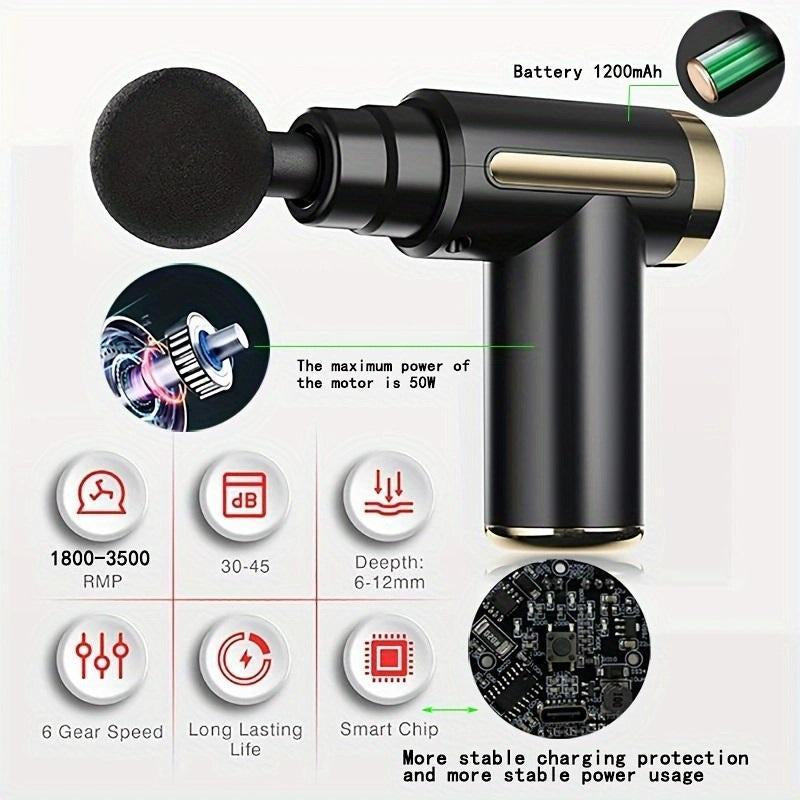 Deep Tissue USB Rechargeable Massage Gun – Your compact powerhouse for muscle recovery. Featuring a cordless, USB-C chargeable design, this percussion massager delivers deep tissue relief right at home, the gym, or on the go. With multiple speed settings and interchangeable heads, it targets sore neck, back, shoulders, and legs. Perfect for fitness enthusiasts, office workers, and travelers seeking quick relief from muscle soreness. Lightweight and battery-powered, it’s your portable post-workout essential that doesn’t compromise on performance.