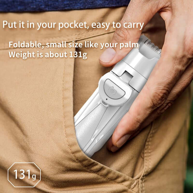 Enhance every shot with this compact, 3‑in‑1 tool – a selfie stick, stabilized tripod, and ergonomic phone grip, all featuring a detachable Bluetooth remote that works from up to 10 m away, making group selfies, vlogs, and live streams effortless.
