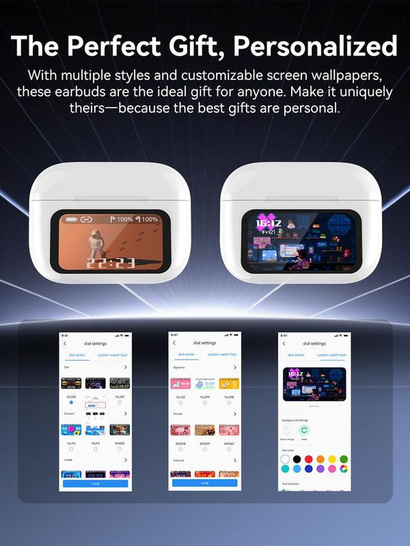 Smart Display Earbuds Case | Bluetooth 5.3 Wireless Noise-Canceling Earbuds | Perfect Gift-Ready High Quality Headphones Audio Headphones Bluetooth Noisecancellingheadphones